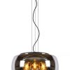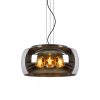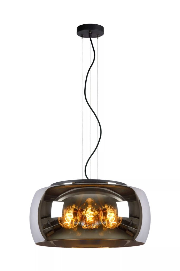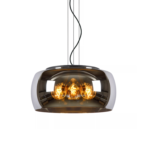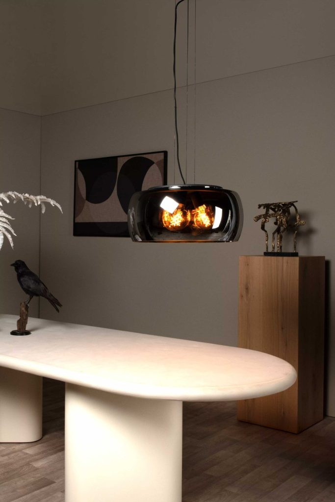 A retro look with a contemporary character. This is how you best describe this characterful, round pendant lamp. Olivia is a striking accessory for your living or dining room. With a diameter of 50 centimetres and a maximum height of 180 centimetres, you can’t miss it. It subtly hides its three light sources behind fumé glass. The lampshade is open towards the bottom.