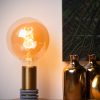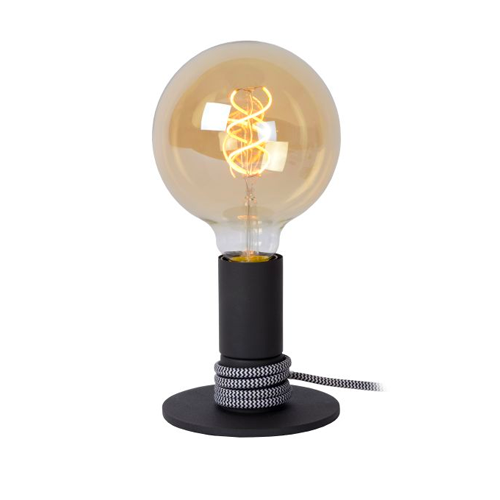 The compact table lamp – barely 12 centimetres high – starts from a simple base. The thin foot climbs vertically upwards and ends in the fitting for the light source. Black or Matt Gold/Brass finish.