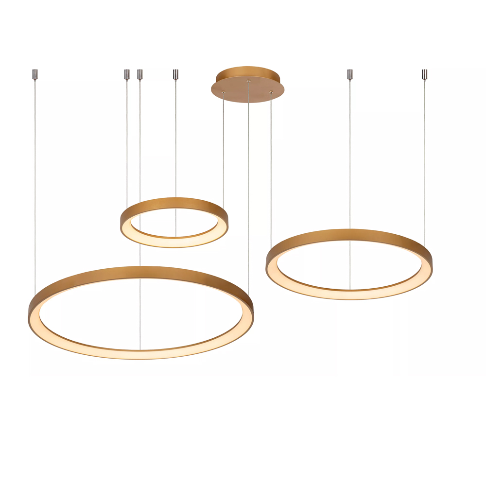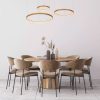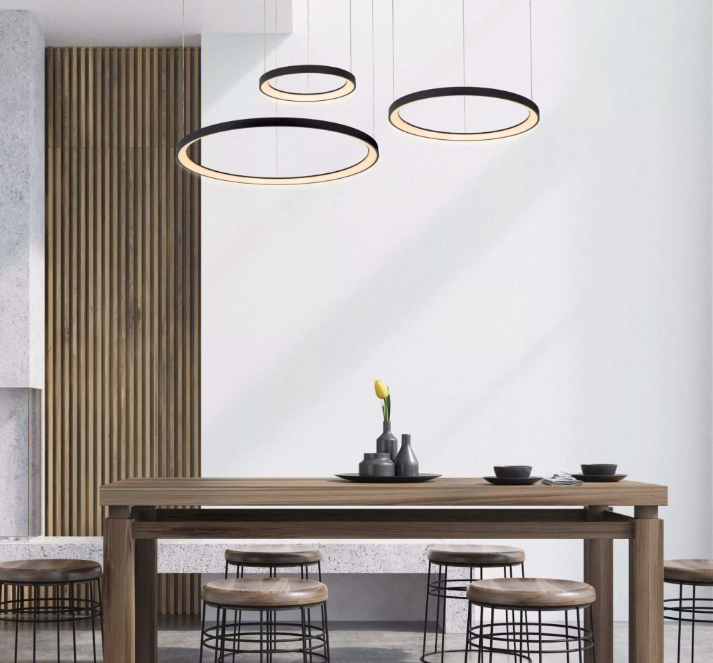 The open, ring-shaped chandelier hangs from a round head on the ceiling with three fine cables. The extremely warm light is the optimal partner at the table, and you can also easily connect Vidal to an external dimmer. Adjust the height of this pendant lamp to a maximum of 150 centimetres, and your dining table will always have the desired mood lighting.