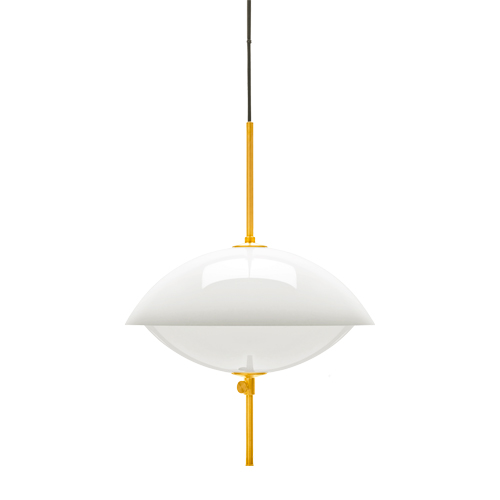The seashell-inspired Clam™ pendant lamp in mouth-blown opal glass and brass, designed by Ahm & Lund, opens to reveal a luminescent pearl of light within. The contemporary design has a timeless aesthetic, illuminating spaces with mood-enhancing light.