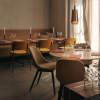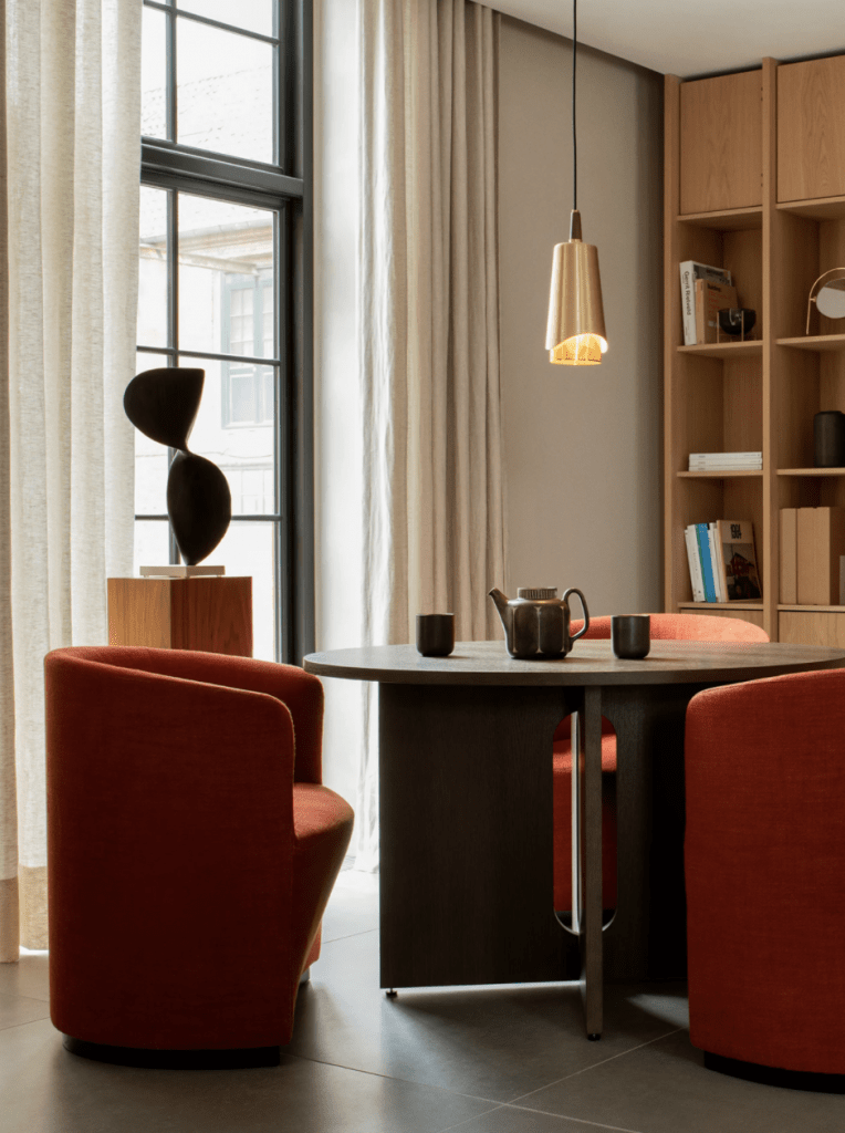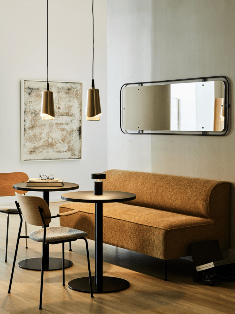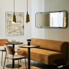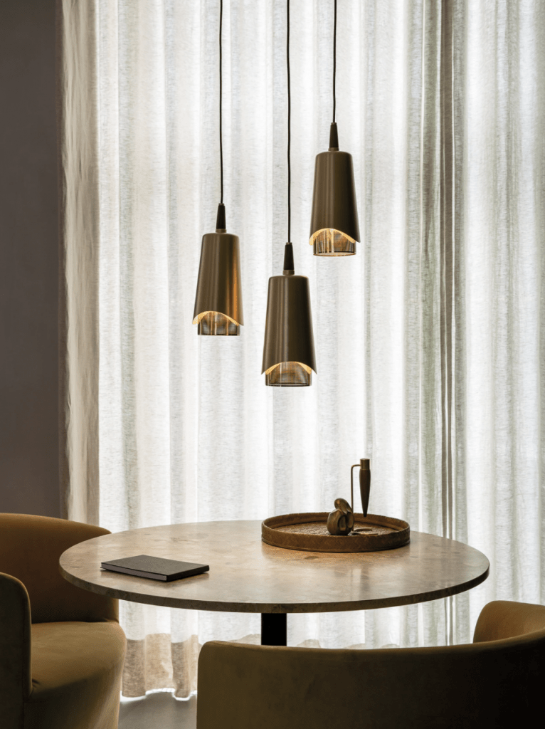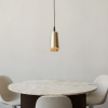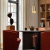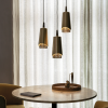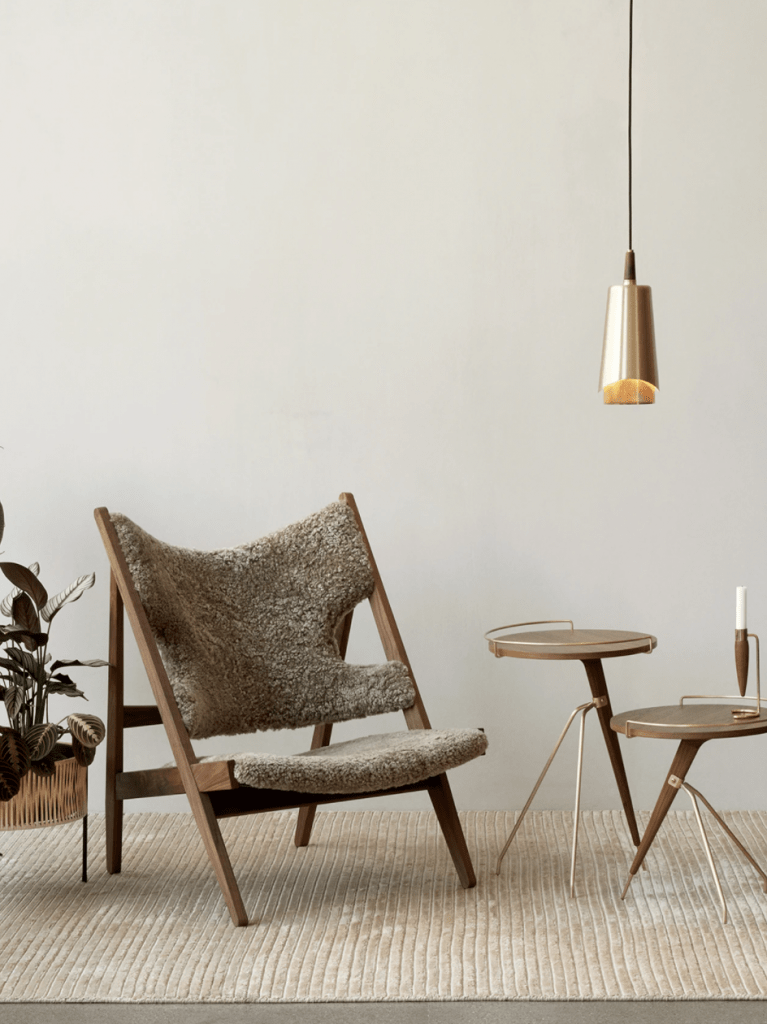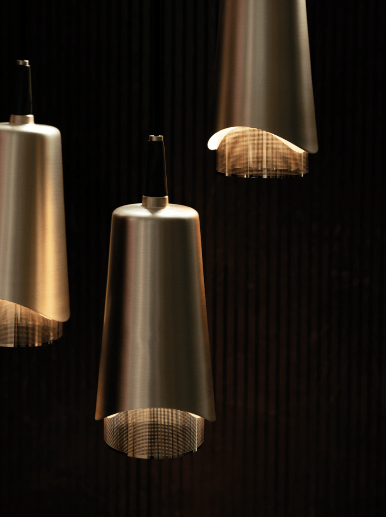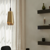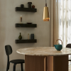 Designed by Arthur Umanoff, this eponymous pendant light shines a light on the contrasts created when perfectly symmetrical, geometric brass and walnut wood components meet. The suspended design emits downward light to illuminate surfaces with its soft and cosy glow.