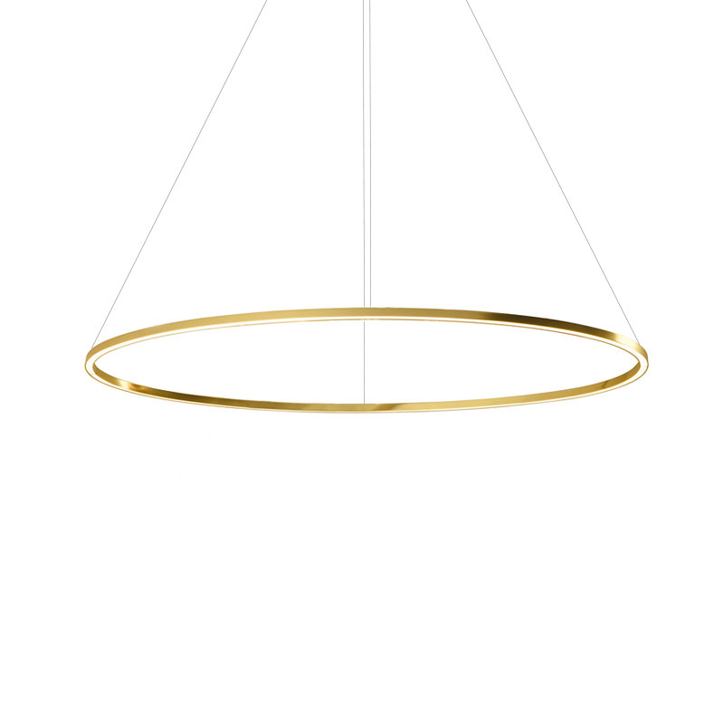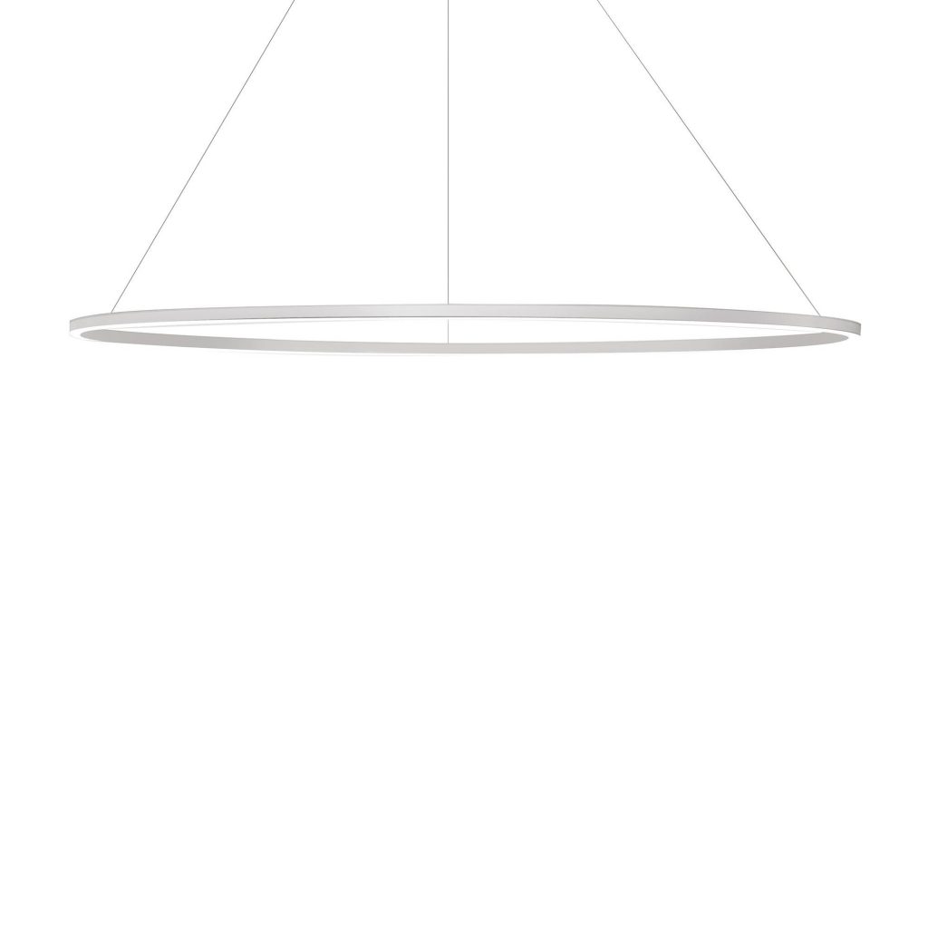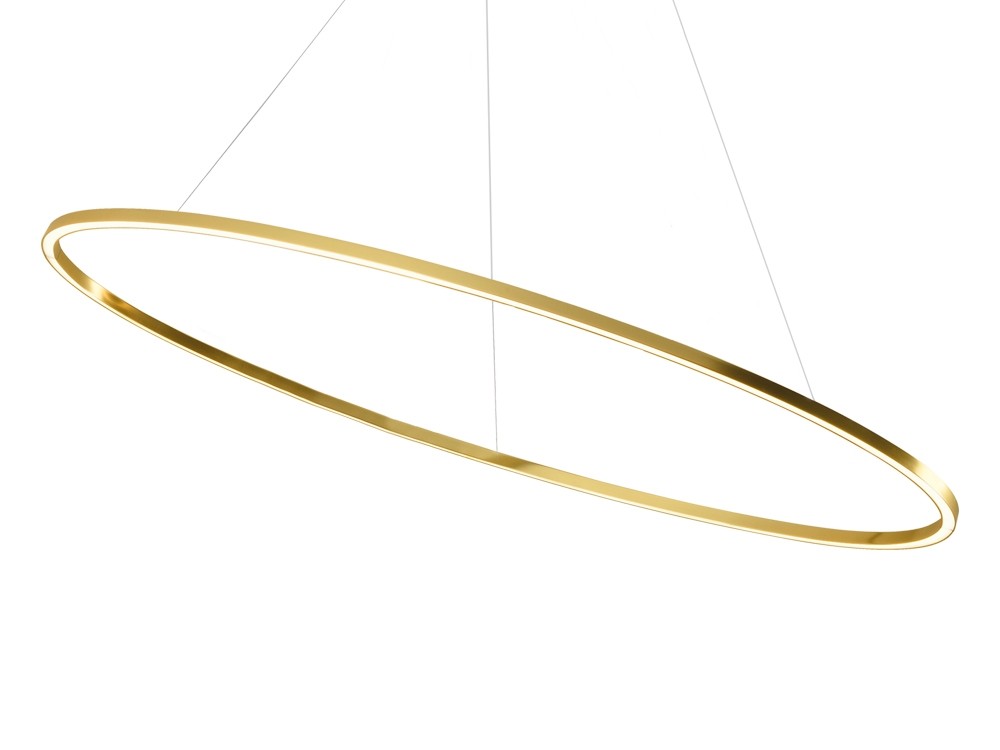 Ellisse Major pendant in extruded aluminium and matt lacquered in White or Gold. The lamps are made using a proprietary extrusion coupling technology.