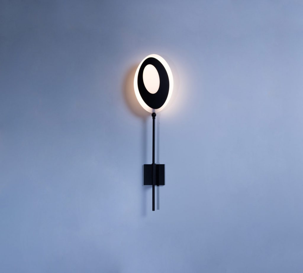 Wall adjustable lamps with moulded diffuser in sandblasted polycarbonate matt white, for widespread warm lighting. Stem in black painted aluminium, wall bracket in polymer filled with glass fibres.