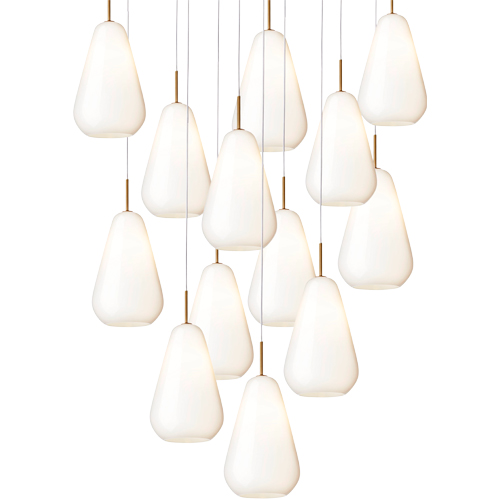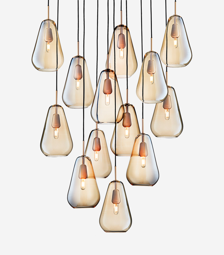 The Anoli collection is made of materials of the highest quality and crafted by skilled artisans. Its expression is simple and consists of mouth-blown drop shaped glass pendants.
