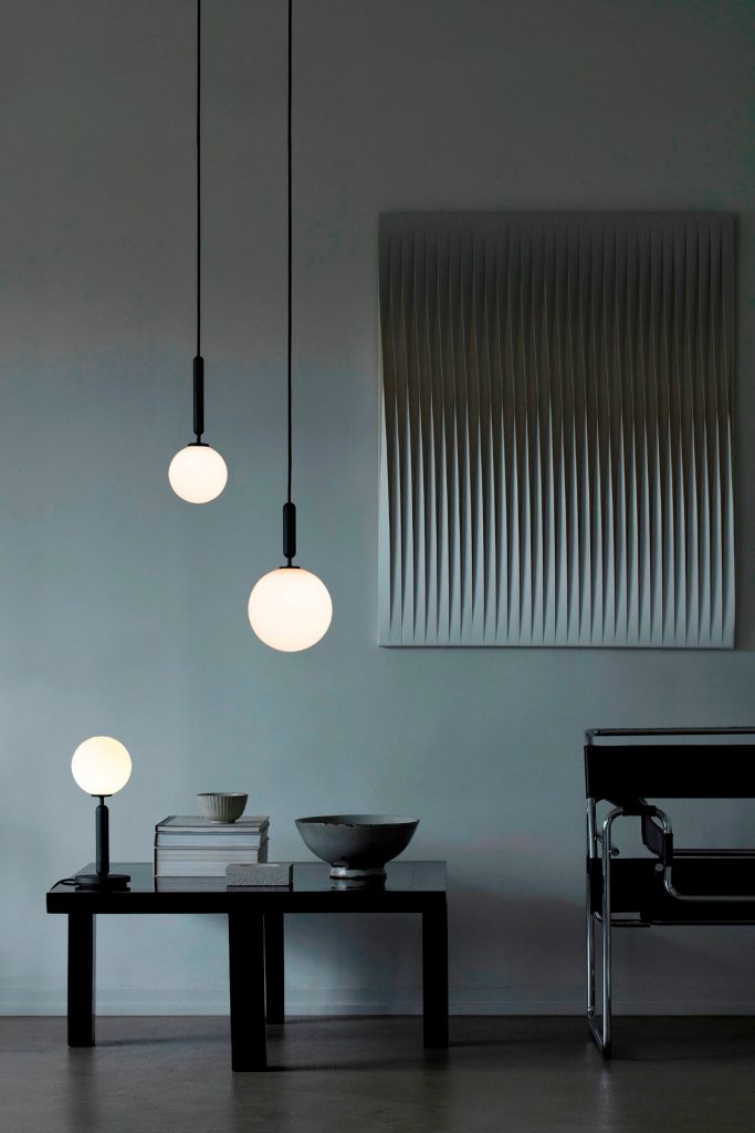 Miira Large is ample and weighty, creating a pleasant sense of interplay with the existing Miira pendant, which is light and narrow in its appearance. Although the new Miira Large is bigger than the existing Miira collection, its minimalist design has allowed it to retain a sensuous and elegant appearance. The opal glass is mouth-blown and creates a gorgeous contrast through its juxtaposition with the deep dark grey finish.