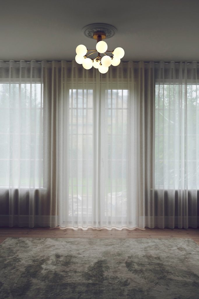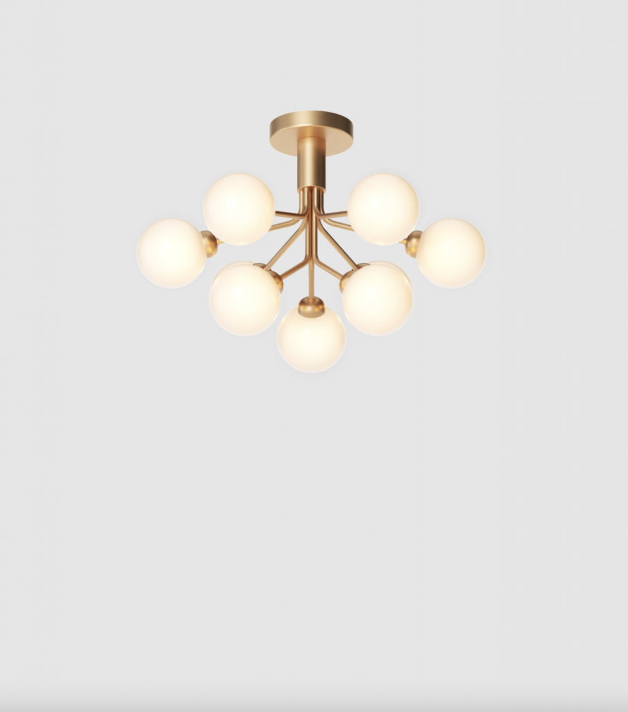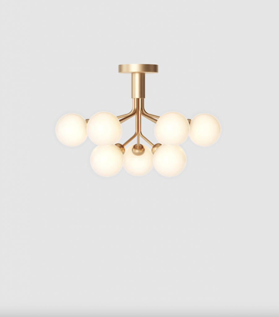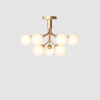 Apiales 9 Ceiling is a ceiling-mounted chandelier with 9 mouth-blown glass globes. From a specially-produced canopy, the arms unfold like flower stalks from which light is spread with grace.