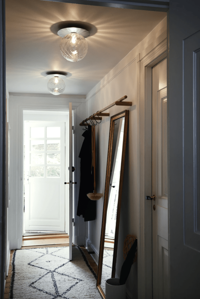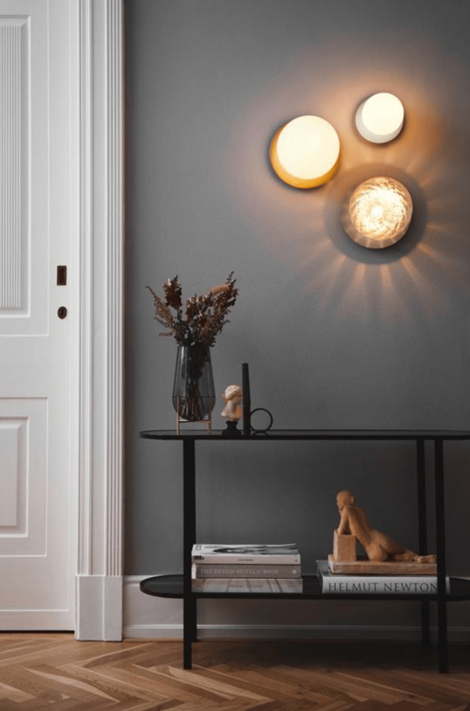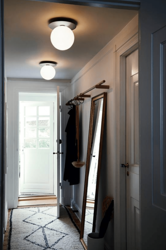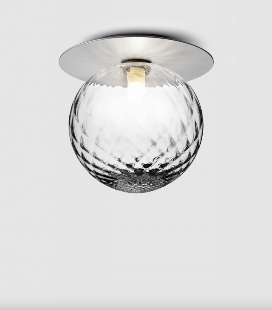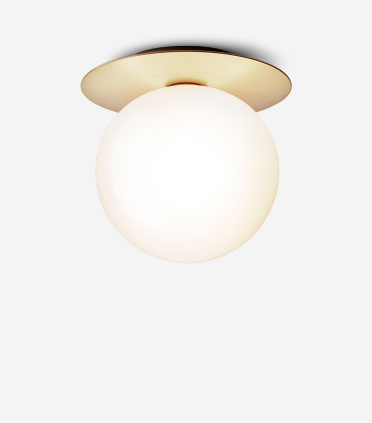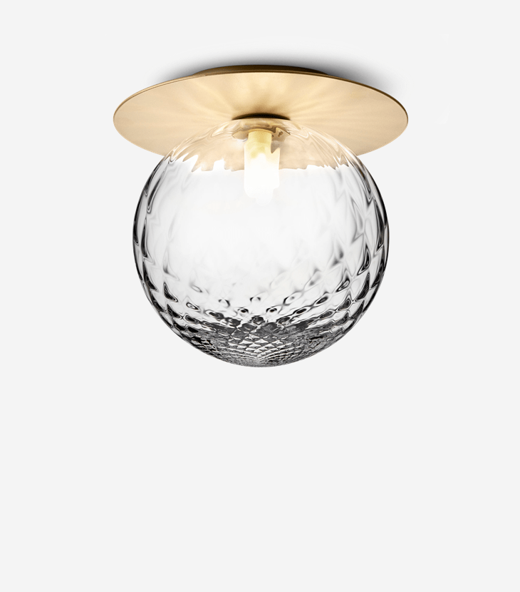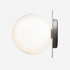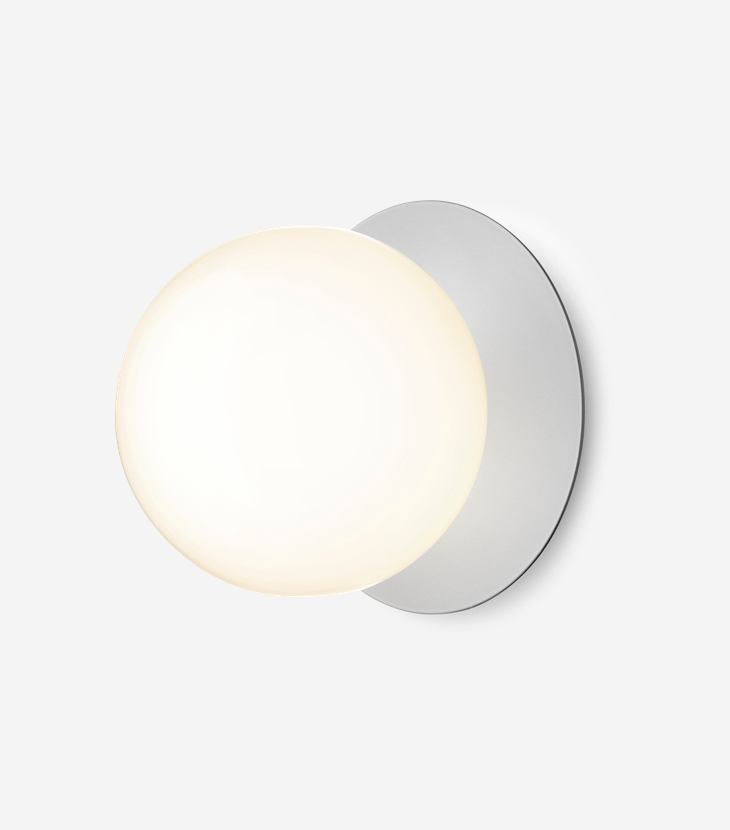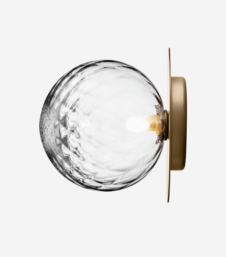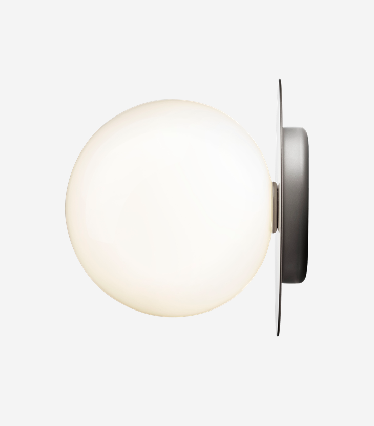 Liila 1 is a single lamp, which looks beautiful on the wall or ceiling. It is simple in its form, consisting of a thin round sheet of metal and a unique, mouth-blown glass sphere. Liila 1 also suits smaller rooms and the entrance hall. Bulb not included.