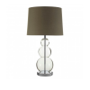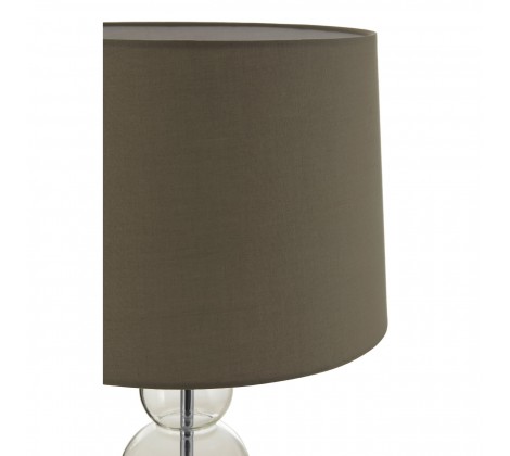 Three clear glass orbs envelop the slender stem of the Luke table lamp.