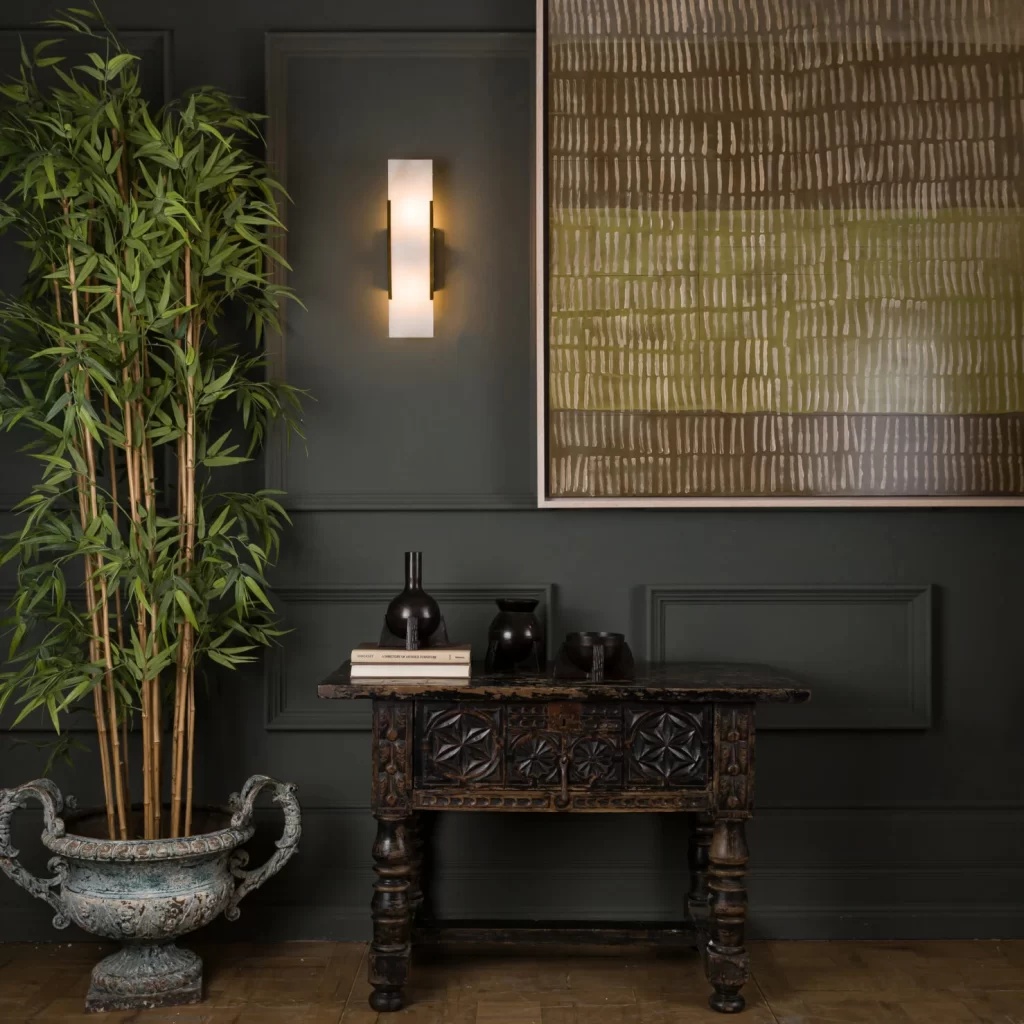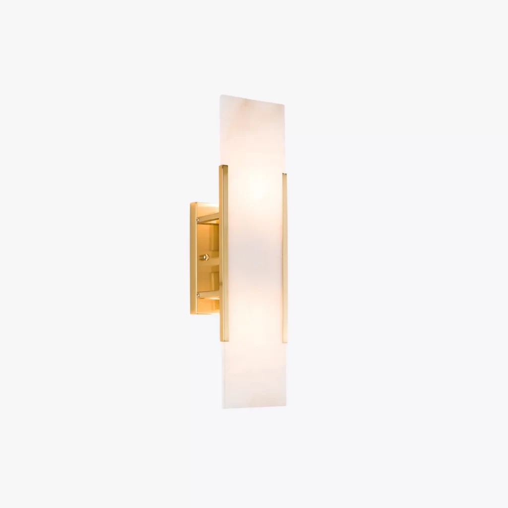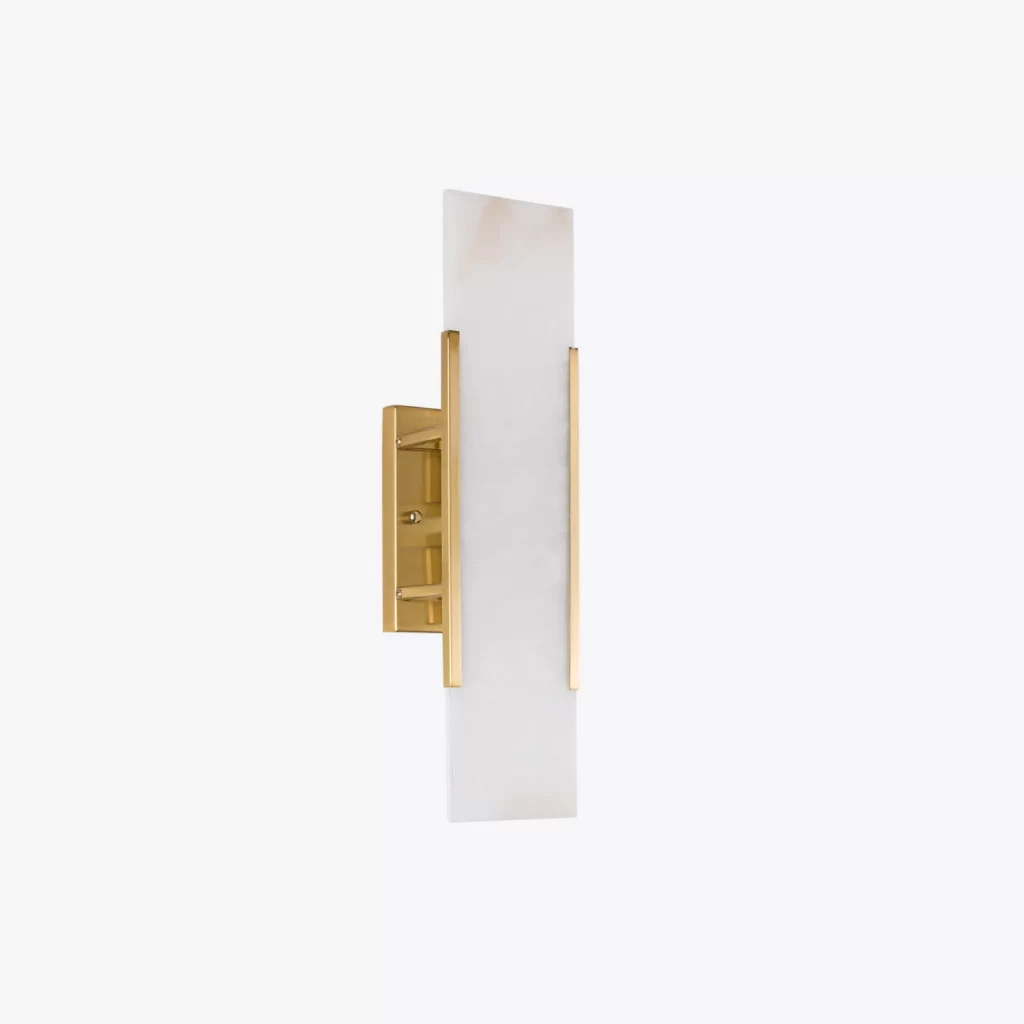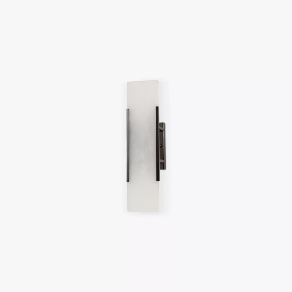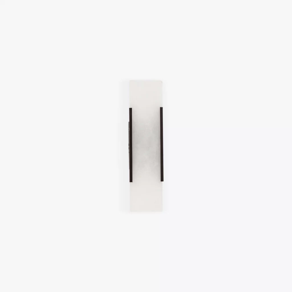 The Mosman Linear Wall Sconce features one piece of alabaster in a sleek rectangular shape creating a unique and incredibly stylish wall light. The minimal backplate in a satin brass or bronze finish is the perfect partner to the naturally-grained alabaster.