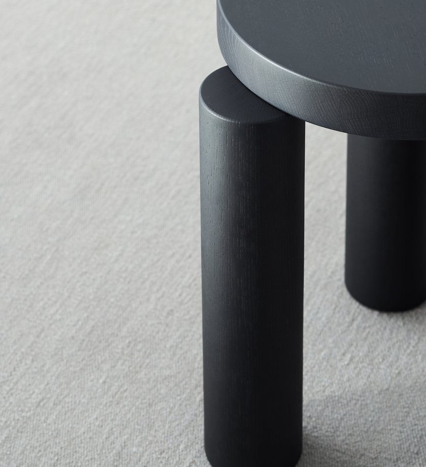 The Offset Stool / Side table is a playful and irregular screw together furniture piece, which displays the beauty of solid oak in generous proportions. Each Offset leg attaches via an off-centre threaded connector,, which enables the legs to locate themselves in an individualised and adjustable position.