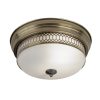A traditional design for classic interior. The Edinburgh 2 light flush ceiling light is designed in an antique brass finish surrounded by an opal glass shade, and can be placed in a bathroom with its IP44 rating.