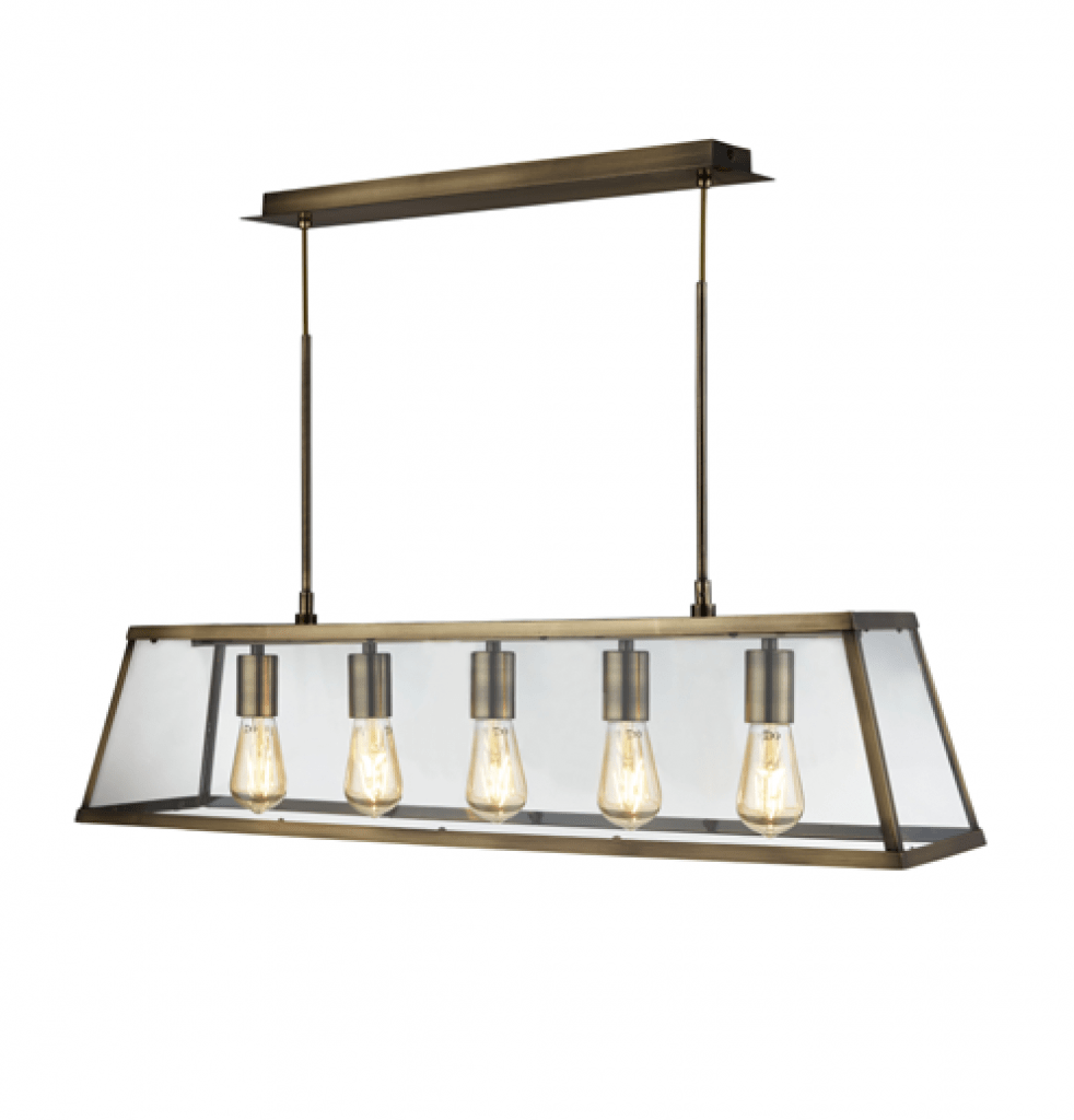 Creating the perfect statement in your home, the 5 light Voyager pendant is definitely one to keep on show. Made in a tasteful antique brass finish and clear glass shade, it creates a bold and decorative piece and makes a great addition to a living room.