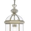 This antique brass Bevelled Lantern with Bevelled domed glass shade is light, bright and traditional. The sturdy frame features clear glass panels on its sides, as well as Bevelled glass shades at the top, with an ornate antique brass finish fitting and chain attaching it to the ceiling. And the central light makes the lantern sparkle, while brightening the entire room.