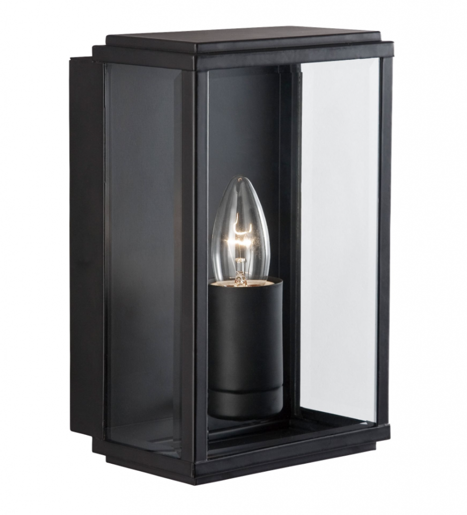This Rectangular Outdoor Light with Clear Bevelled Glass is simple, classic and elegant. The box features clear bevelled glass panels around the sides and is lit by an attractive candle style light fitting.
