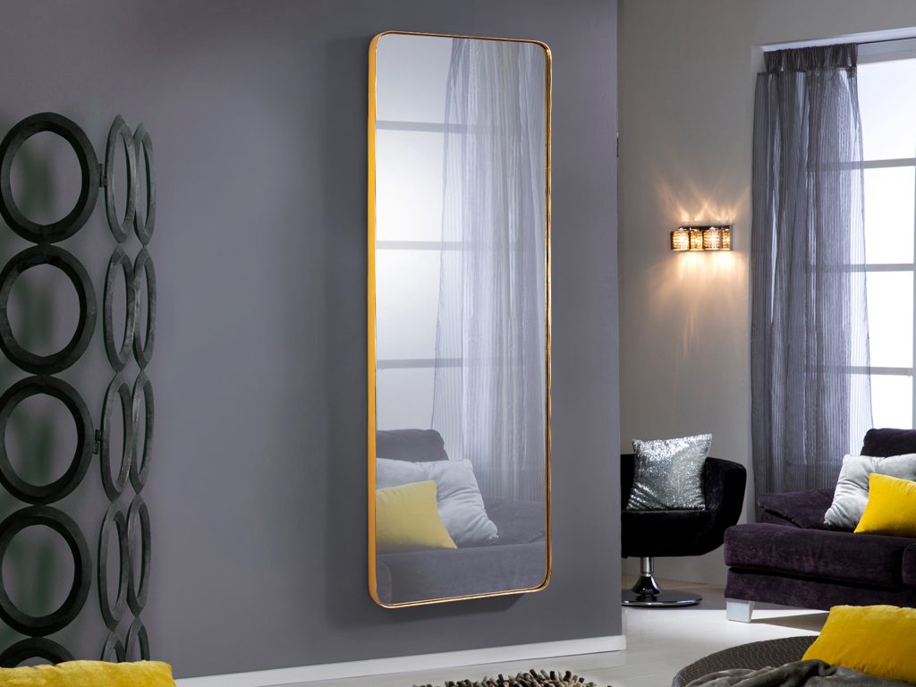 Rectangular mirror with fibre frame finished in Gold. Can be placed horizontally or vertically.