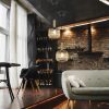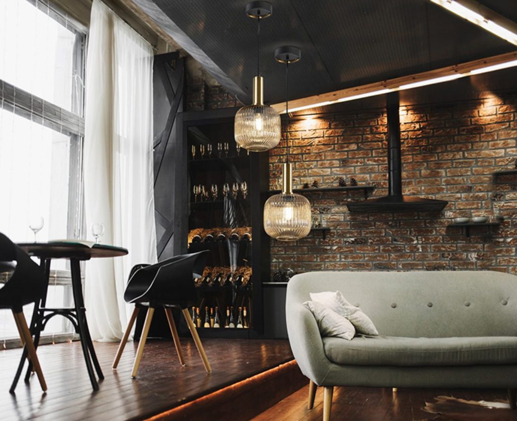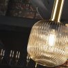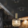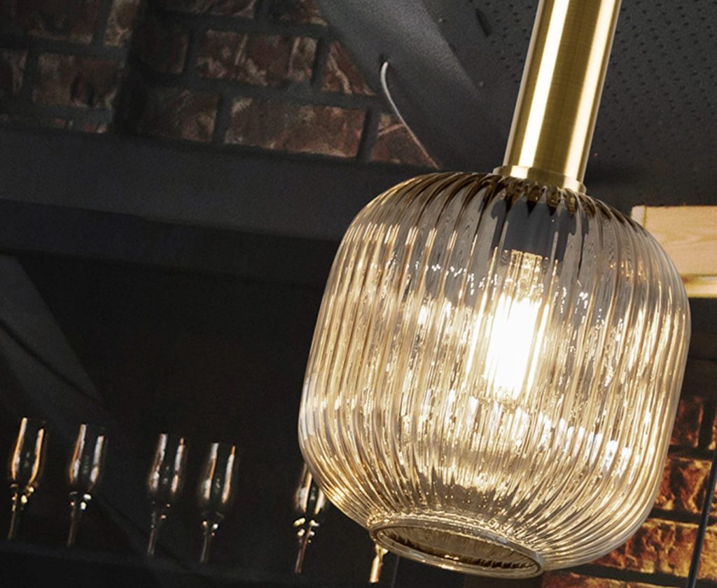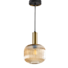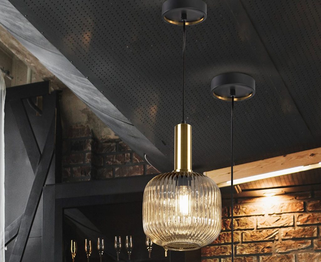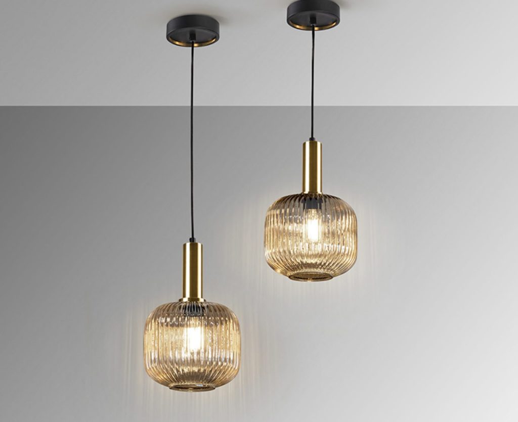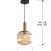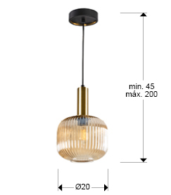 Lamp of 1 light made of metal, finished in matt black, with details of satin brass. Amber molded glass shade. Adjustable in length.