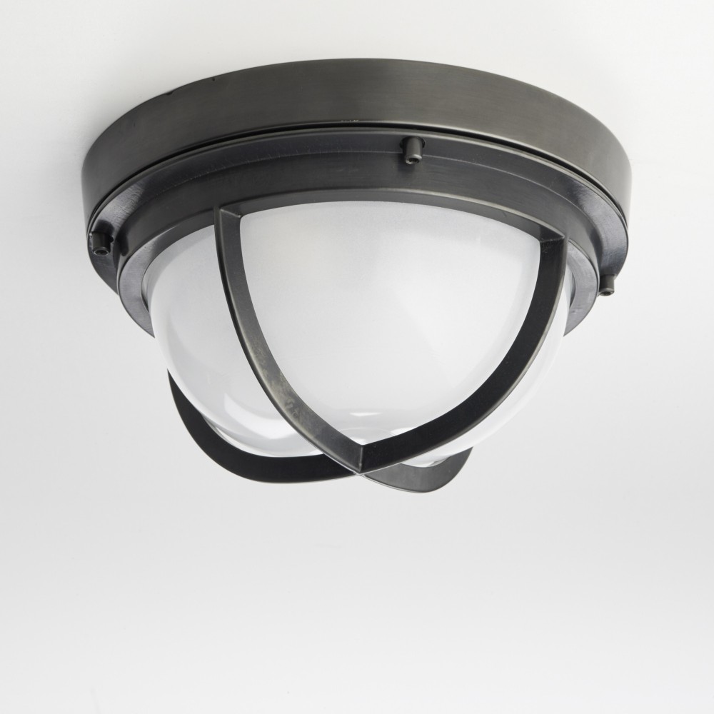 Ceiling light in dark bronze, with cross mould protection glass grid and frosted glass.