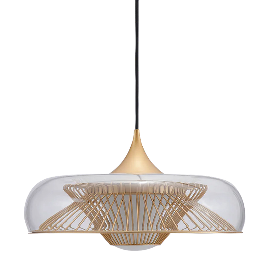 The Chordis lampshade brings a timeless blend of glass and brass to interiors, creating an airy, almost invisible feel balanced by the warm glow of its polished brass accents. Its delicate design reflects a meticulous attention to detail, combining the timeless beauty of curved glass with the lyrical grace of piano strings.