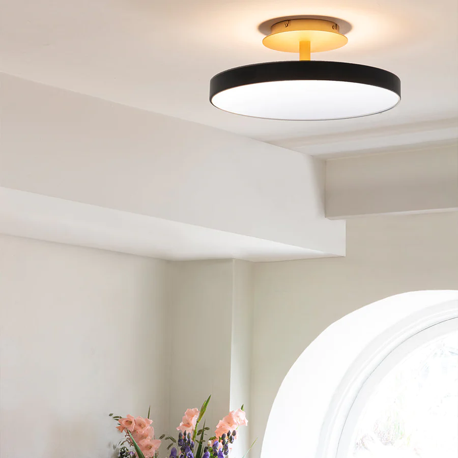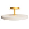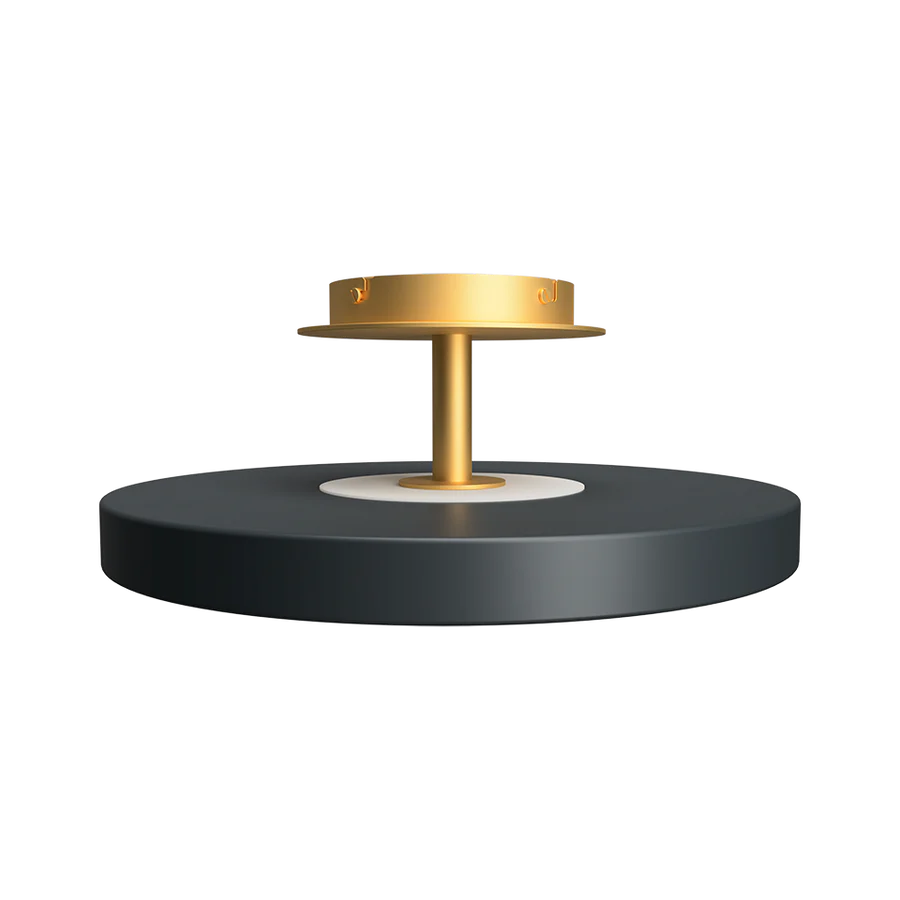 The Asteria Up ceiling lamp is not only offering the perfect light but is also a very discrete and stylish solution. The lampshade is placed on a brass base, adding a refined expression to the lamp design. A top panel provides an ambient light upwards as well, enhancing the details of the design and secures a soft atmosphere in the surrounding space.