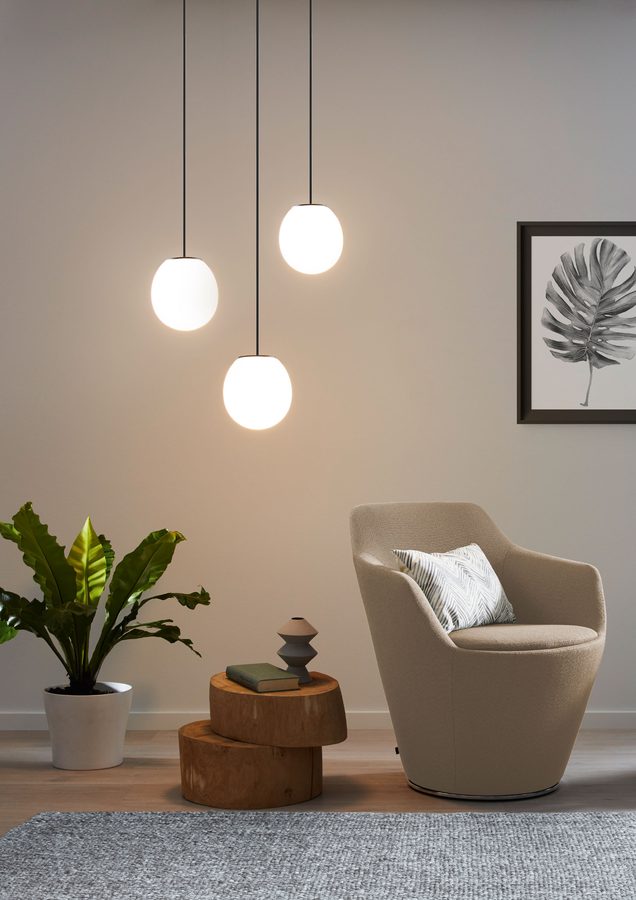 Dro Suspended 3.0 pendant in Textured Black and Opal White.