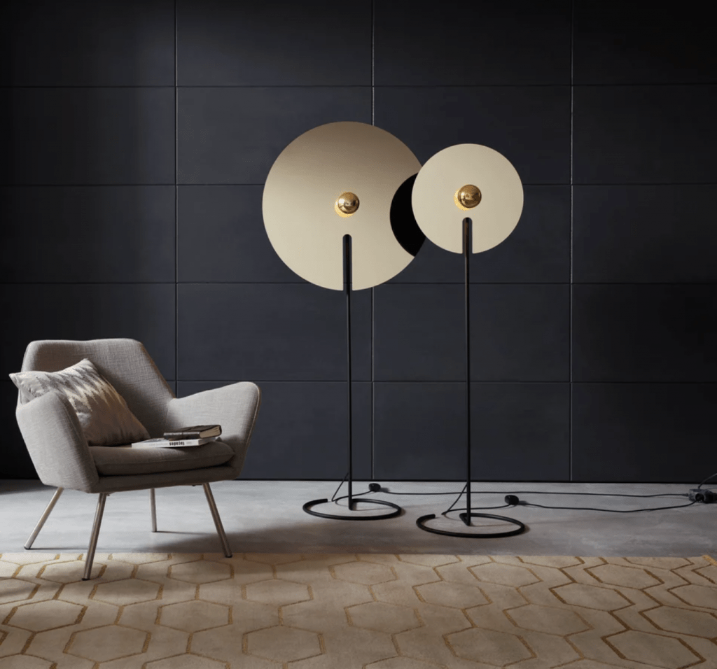 Mirror Floor 2.0. Jet black and light gold finish. Lamp not included.